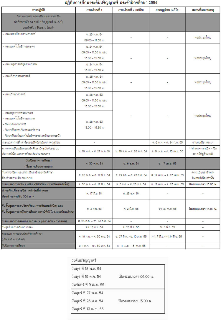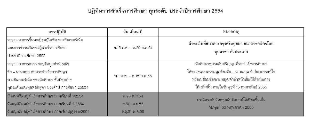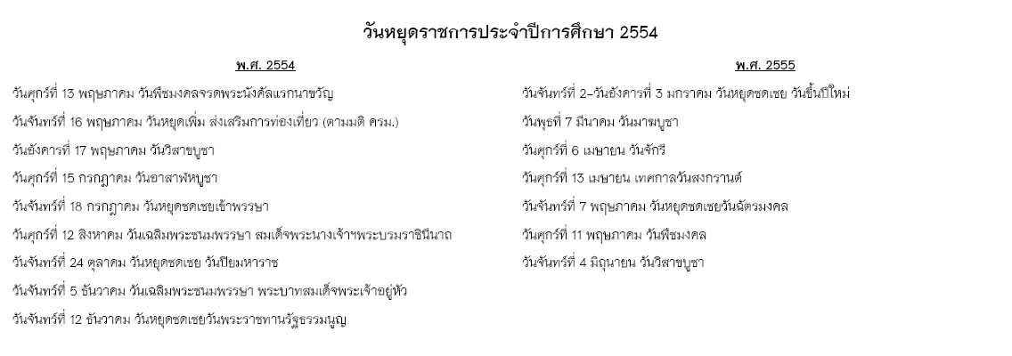 ปฏิทินการศึกษาปีการศึกษา 2555