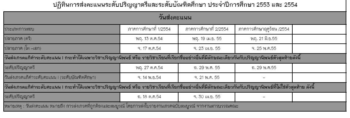 หลักเกณฑ์การส่งคะแนนและเกรดในการวัดผลการศึกษา