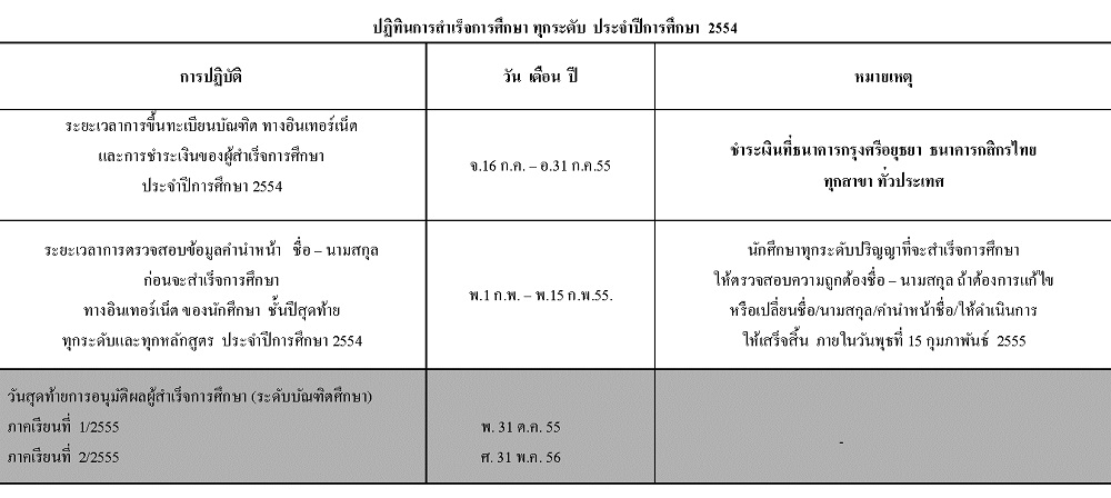 ปฏิทินการศึกษาปีการศึกษา 2554